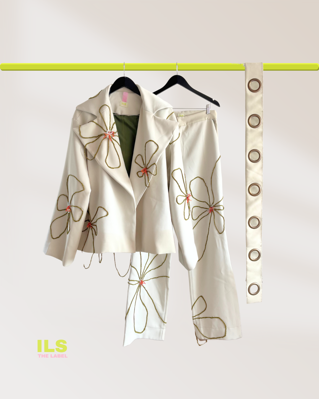 ETM N.01 represents a thoughtful approach to sustainable fashion. Crafted from reclaimed curtain fabric, this handmade jacket and pants set transforms vintage textiles into contemporary wear. Each piece features intricate hand-embroidered floral details that showcase artisanal craftsmanship. By repurposing quality materials, this collection reduces textile waste while delivering unique, one-of-a-kind garments. Perfect for those who value both environmental responsibility and distinctive design.